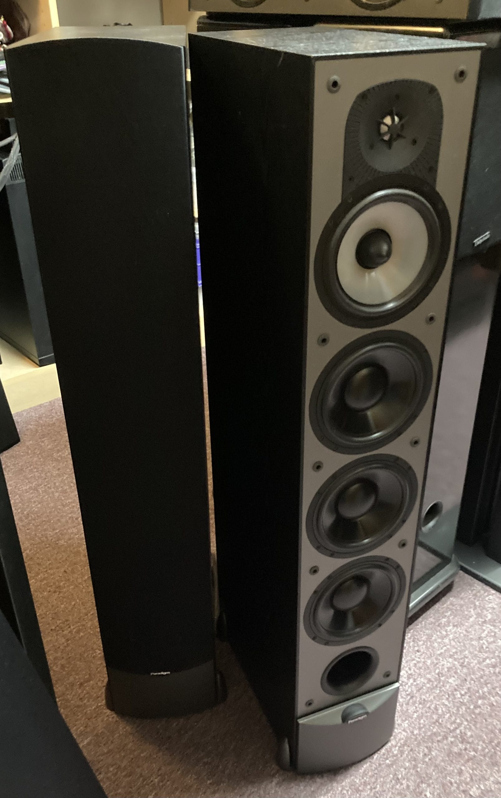 One of the most distinctive features of the Monitor 11 v.4 is its use of Paradigm’s proprietary driver technologies. The tweeter uses a Pure Aluminum Dome (PAL) design mounted in a shallow waveguide to improve high-frequency dispersion and clarity. The midrange driver uses a Satin-Anodized Pure Aluminum (S-PAL) cone housed in its own chamber to prevent interference from the bass drivers. Meanwhile, the three woofers use carbon-infused polypropylene cones designed to combine rigidity with controlled damping, producing strong low-frequency performance without excessive distortion.